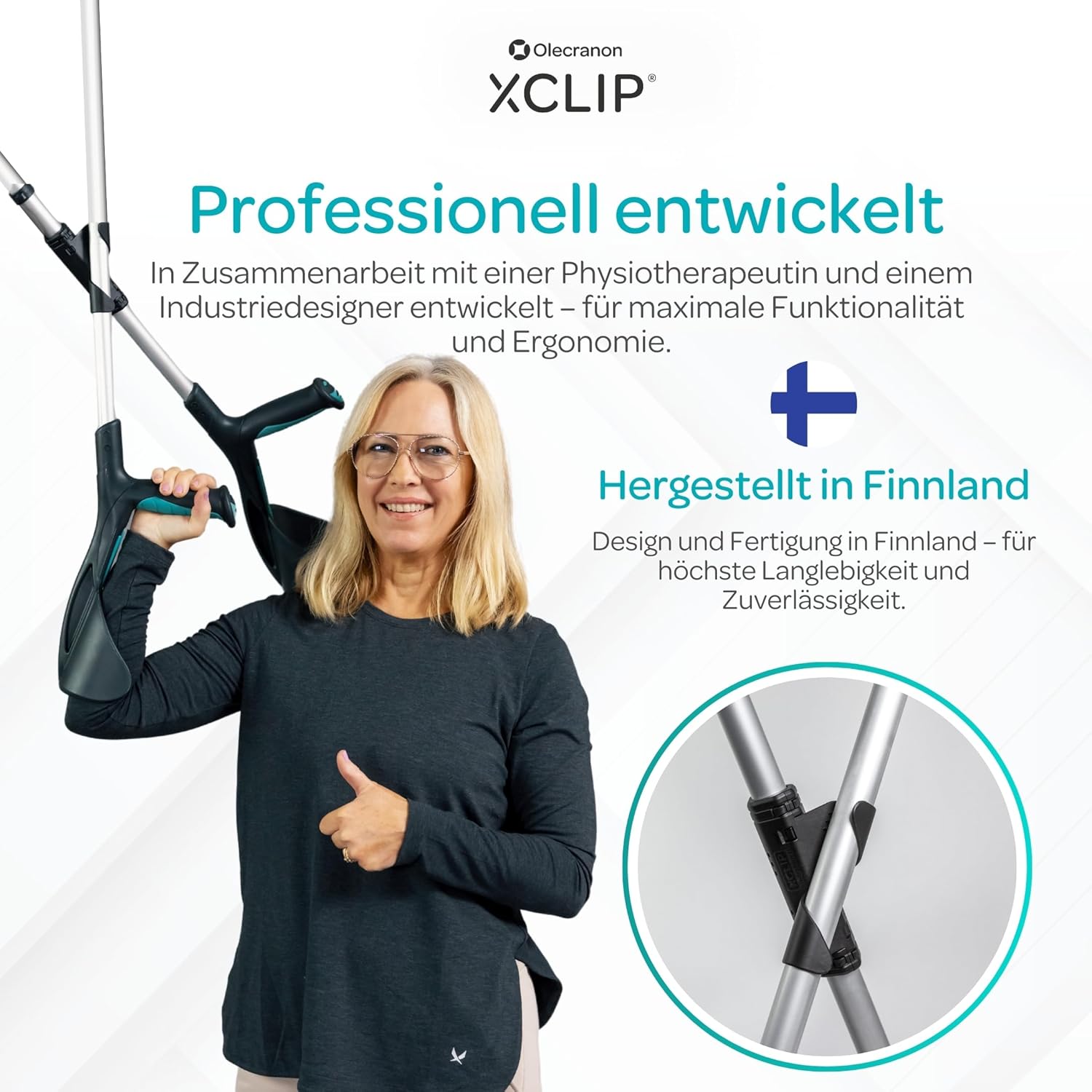 Stabilität: Verhindert das Umfallen der Krücken durch die innovative X-Verbindung.